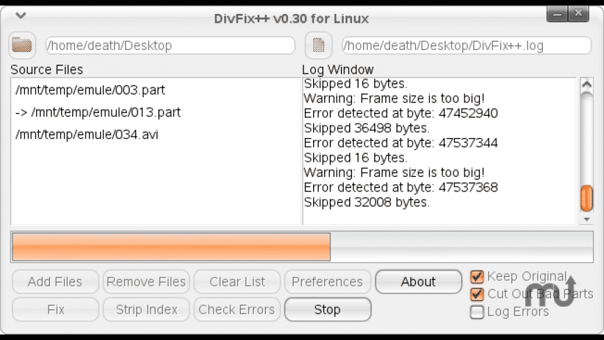 DivFix has another great plus which makes it a must have tool for all. It features unicode support and cross-compileable. Thus you get Linux MacOSX Windows support with the help of this tool as well. A highly efficient tool. All in all, DivFix makes the best repair utility for AVI users. DivFix can be downloaded pre-compiled for Windows, Mac and Linux operating systems. The interface and operation is straight forward. Tell it where you.